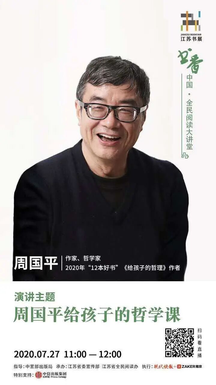 7月27日上午,“书香中国 · 全民阅读大讲堂”著名作家、哲学家周国平开讲第五场,他的讲座题目是《周国平给孩子的哲学课》。