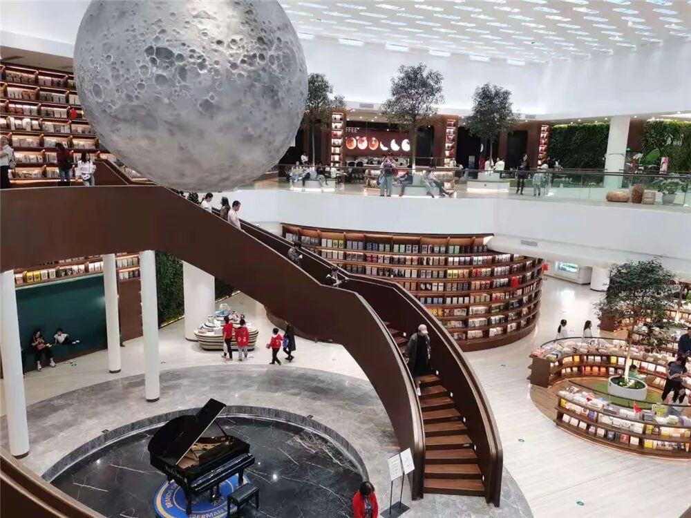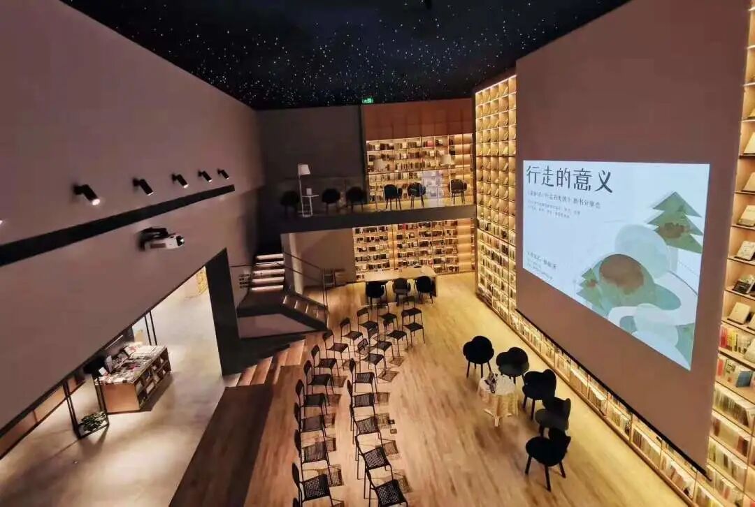 光的空间书店布局呈现延伸型,读者在店门口便可将书店大部分区域尽收眼底。在这里,每个角落都充满设计,暖暖的色调,满目的好书,让浮躁的心静慢下来。尤为独特的是书店的星厅,以星空为屋顶,以书架为支撑,内设两层布局,中间预留的场地空间外,还特设了一座八米高的书墙,位于星空穹顶之下。这座书墙并不是摆设,设计的初衷在于彰显知识的厚重,书墙上的每一本书籍,在店内都可以找到。漫步镂空书架旁,寻一本好书,与下一名读者不期而遇,或许可以找到一位阅读的知己。除了有好书,光的空间里还组织开展多种类型的文艺活动。诗人余华携新书《我只知道人是什么》来到这里,通过自己的生活经历与读者共同品味世间百态。青年作家张皓宸带着自己的新书《最初之前》,在书店的星空之下与读者热情互动,一起分享阅读过程中的喜怒哀乐。在“光的空间”里发现书中的美,从书中发现世界的美,“光的空间”已成为书与书之间、书与作者之间沟通交流的桥梁。