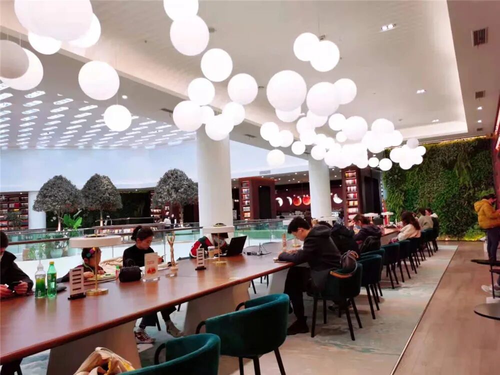 在这近6百平米的空间里,木制的书架,暖暖的灯光,甜蜜的果香,宁静的氛围,这是大众书局连云港万达店营造的“世外桃源”。新店简约的设计风格、大胆的艺术用色,展现出一份精致,勾勒出视觉张力,给人焕然一新的开阔体验。书店内有一万多种精选图书,涵盖“衣、食、住、行、育、乐”六大方面。展台上图书的美妙组合陈列,带来立体展架之感,书架作为自然背景,使其既成为文学区、少儿区的点睛之笔,也起到标识和引导作用。嗜书爱书的小朋友、一丝不苟的学生、忙碌的上班族、耄耋之年的长者等都可以在此找到一隅安静之地,进行阅读和创作。这里有的不仅仅是书籍,移步前行,踱步咖吧区,屋顶一盏盏造型迥异的吊灯,诉不尽的温柔缱绻;舒适的座椅,轻柔的音乐,书香的醇厚,饮品的香甜,弥漫着书香与果香的甜蜜。这里还有丰富多彩的店内活动,作家签售会,插花烘焙课、亲子阅读会、手偶剧场等,让读者在书店中共度阅读的美好时光。