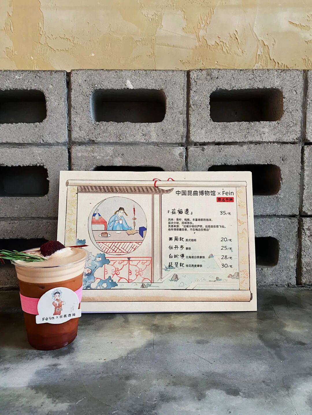 “在梅边”绵云梅梅咖啡宾治,梅的意象与《牡丹亭》中杜丽娘《写真》题词“不在梅边在柳边”的诗句暗和,原诗的藏字隐喻本就是整本传奇的剧情骨眼,书生柳梦梅人的人物戏剧设定就充满的象征,如同这款咖啡的命名。