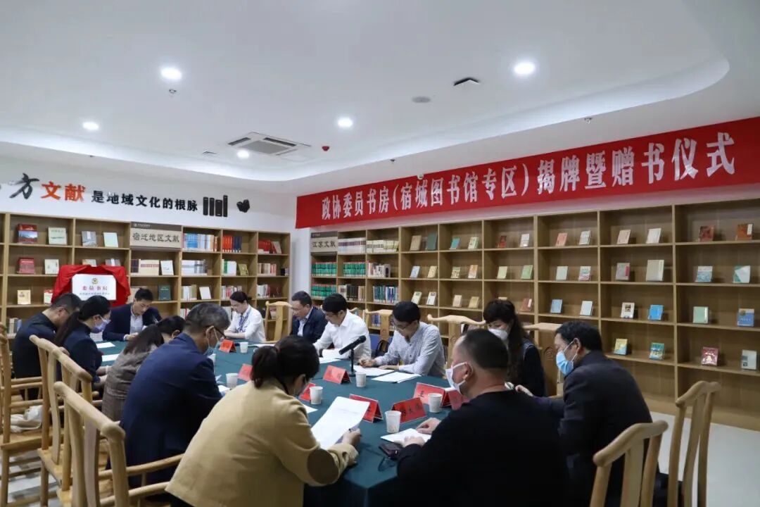 。。活动中,熊治国为“委员书房”揭牌。区政协一级主任科员、区历史文化研究会副会长兼秘书长王威及区政协二级主任科员王爱云向区图书馆赠送《宿城古黄河》等书籍200余册。与会人员围绕如何建设好、使用好“委员书房”交流发言、建言献策。