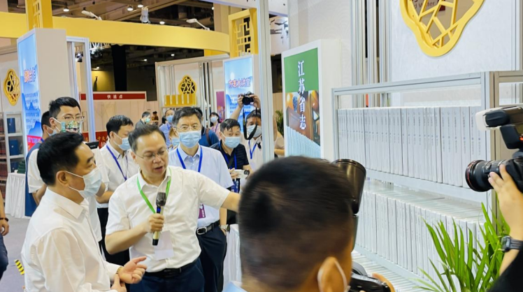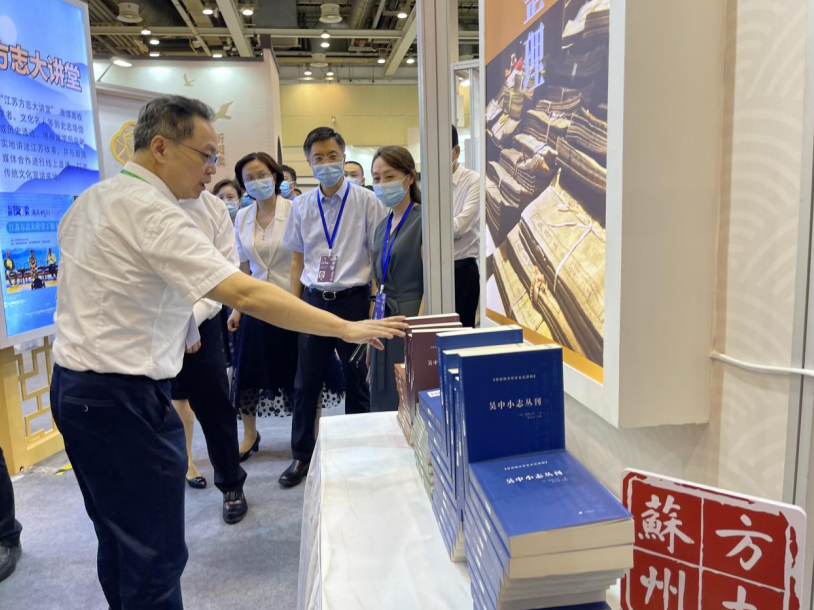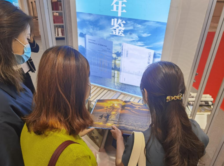 盐城市参展的特色史志书籍中,获评中国年鉴精品工程的《盐城年鉴(2021)》,十分引人注目。该书以深蓝、浅蓝、蔚蓝、天空蓝、海洋蓝、清新蓝……多样“盐城蓝”铺就全书底色,以群鹤引吭高歌迎朝阳的生态美景绘出全书底图,以精美大开本图片直观展示盐城世遗湿地、百河之城、森林城市、海盐名城、红色热土、淮剧杂技之乡的风流雅韵,以特载板块、特色类目、专题类目等框架设计将年度大事与地域文化紧密融合,全面增强了年鉴存史资政价值,提升了读者阅读体验。线条设计、图表对比、美图点亮等精巧构思,吸引不少读者停驻浏览。