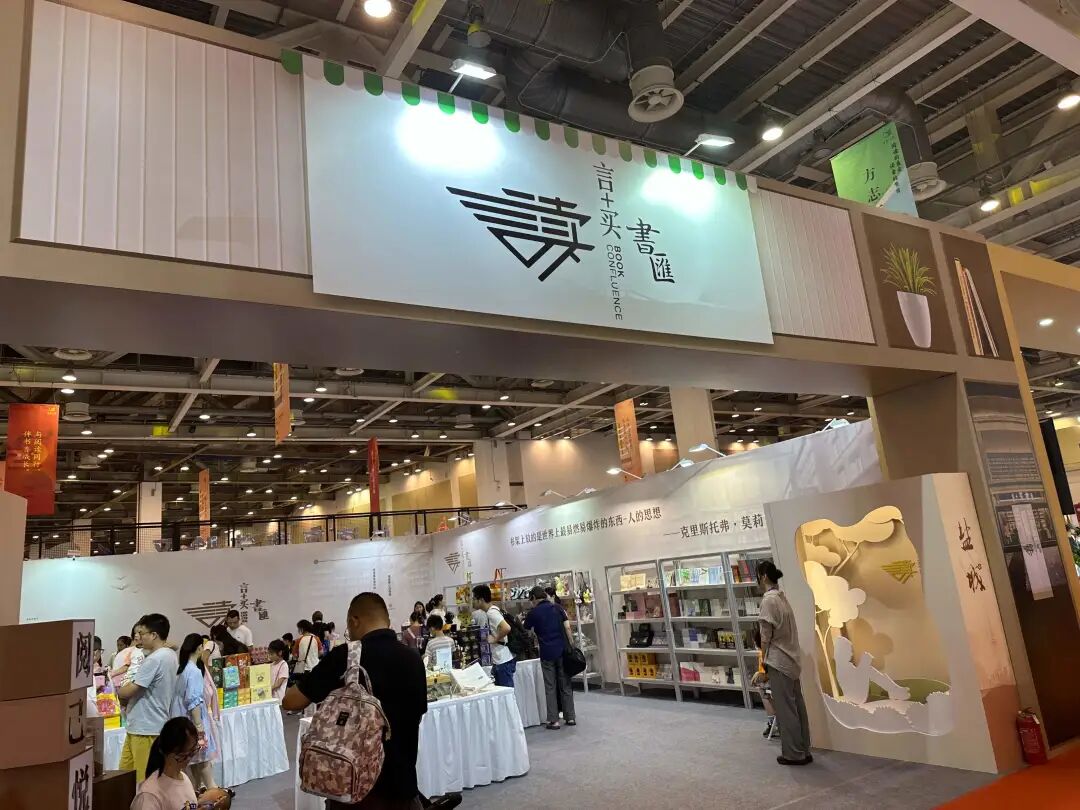 言+买书汇数梦小镇店店长蔡娟介绍,这是言+买书汇第二次受邀参展,本次主要以艺术和城市文化为重心,展台经过精心设计,融入盐城地标建筑和文化元素,并展示了言+买书汇品牌发展脉络。参展展品种类丰富,不仅涵盖具有地方特色的盐雕、盐城文脉相关书籍,还包括博物馆文创、美学生活、儿童玩具、手账文具等诸多品类,旨在将盐城城市文化及品牌内涵完整呈现给大众。