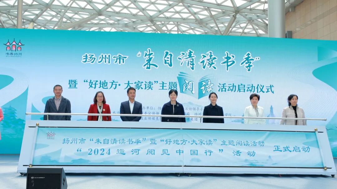 馥郁书香润民心,全民阅读领风尚。4月23日上午,扬州市“朱自清读书季”暨“好地方·大家读”主题阅读活动、“2024运河阅见中国行”活动启动仪式在扬州市图书馆门前广场举行。扬州市委常委、宣传部部长张长金,扬州市政府副市长刘流,扬州市委宣传部副部长、市新闻出版局(版权局)局长陈洁,扬州市文化广电和旅游局党委书记、局长陈玲春出席活动。