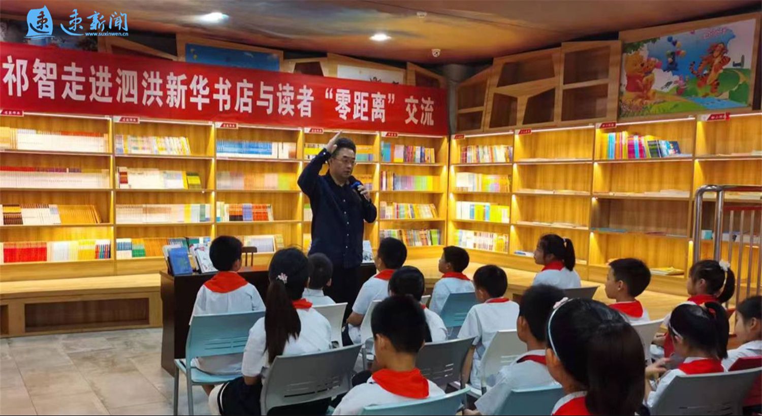 7月8日下午,著名作家祁智在江苏凤凰新华书店集团有限公司泗洪分公司泗州大街店开展“用文学擦亮你的天空”讲座,用一个个生动的故事点燃孩子的阅读兴趣。
