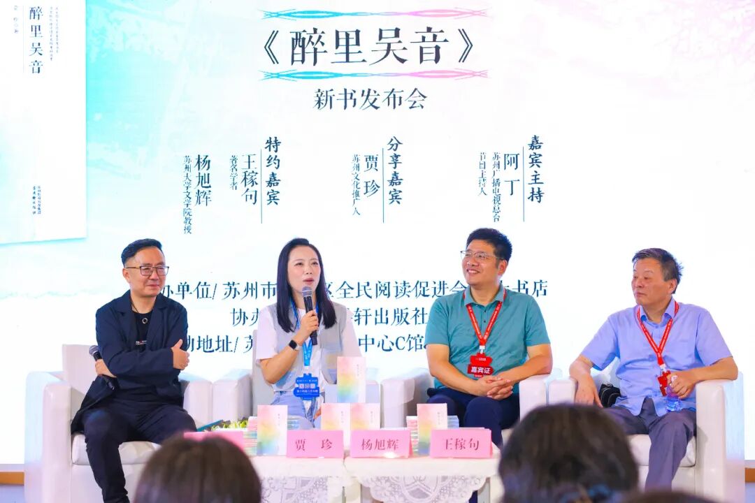 用光影文字传递着岁月温柔,用吴侬软语延续着光阴里的故事。7月9日,怀揣着对家乡苏州的热爱,苏州文化推广人贾珍携新作《醉里吴音》来到第十四届江苏书展书香苏州馆,与读者一同分享创作背后的吴语文化。活动由苏州广播电视总台节目主持人阿丁主持,著名学者王稼句、苏州大学文学院教授杨旭辉作为特邀嘉宾出席。